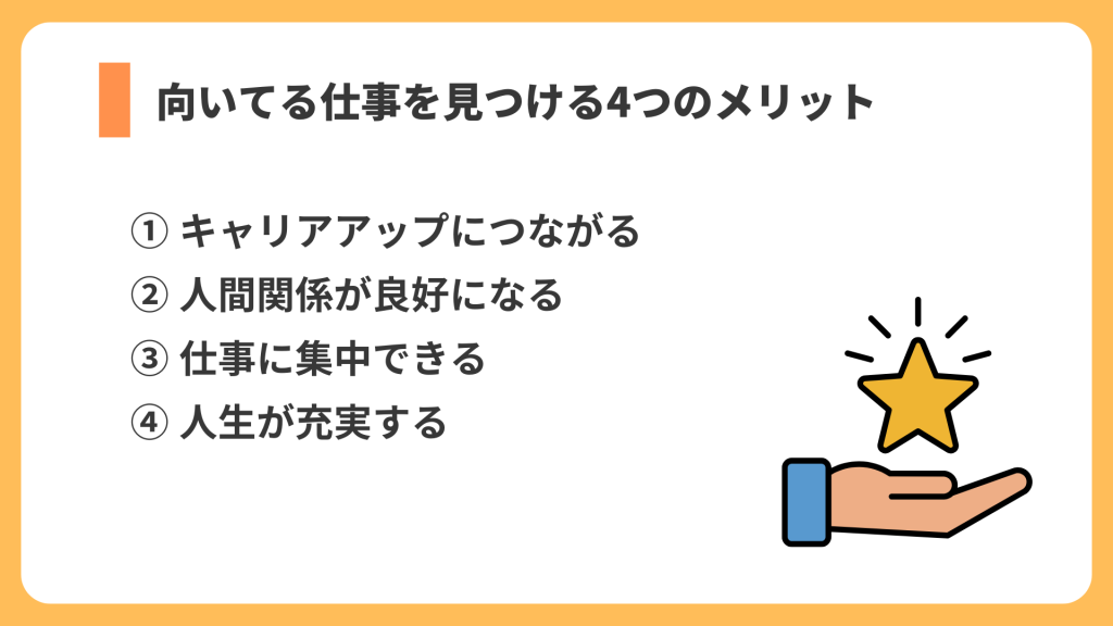 向いている仕事では、強みを活かしやすく、成果が出やすくなります。