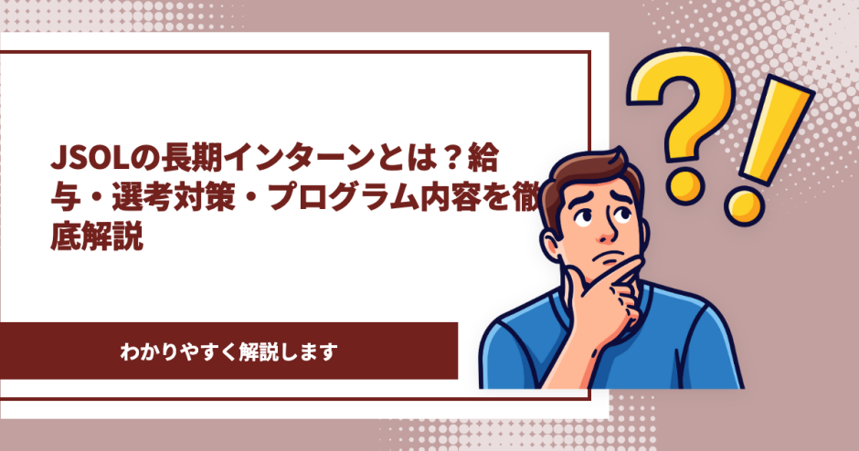 この記事では、JSOLの長期インターン「JUMP」のプログラム内容や給与・待遇、選考フローと対策方法まで網羅的に解説します。