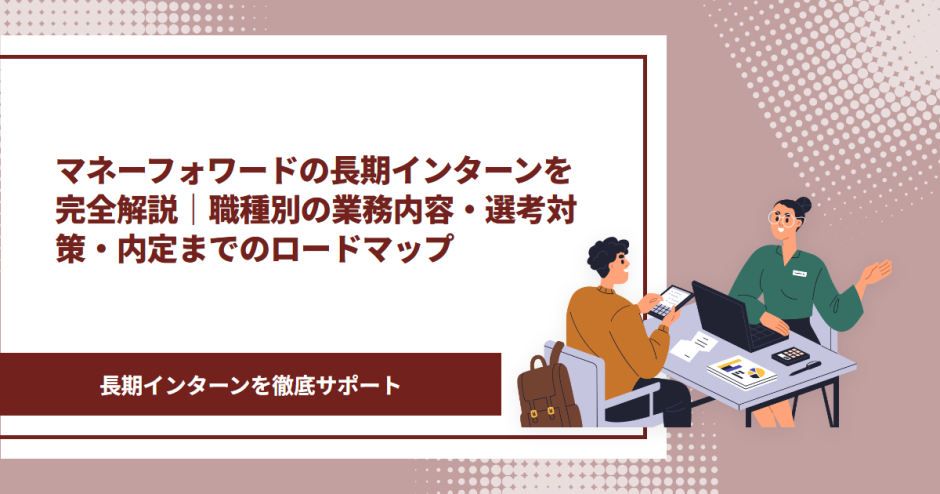 この記事では、マネーフォワードの長期インターンについて、職種別の業務内容から選考対策、他社比較、内定までのロードマップまで網羅的に解説しました。