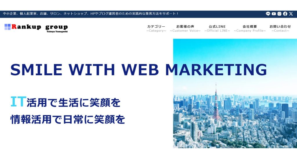 ランクアップ株式会社は、中小企業・個人起業家・店舗・サロンのためのWEB集客支援を行う会社です。
