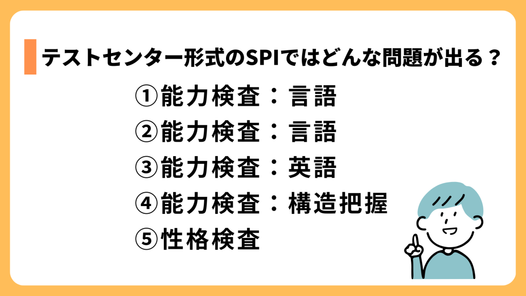 ではテストセンター形式のSPIでは具体的にどんな問題が出題されるのでしょう。